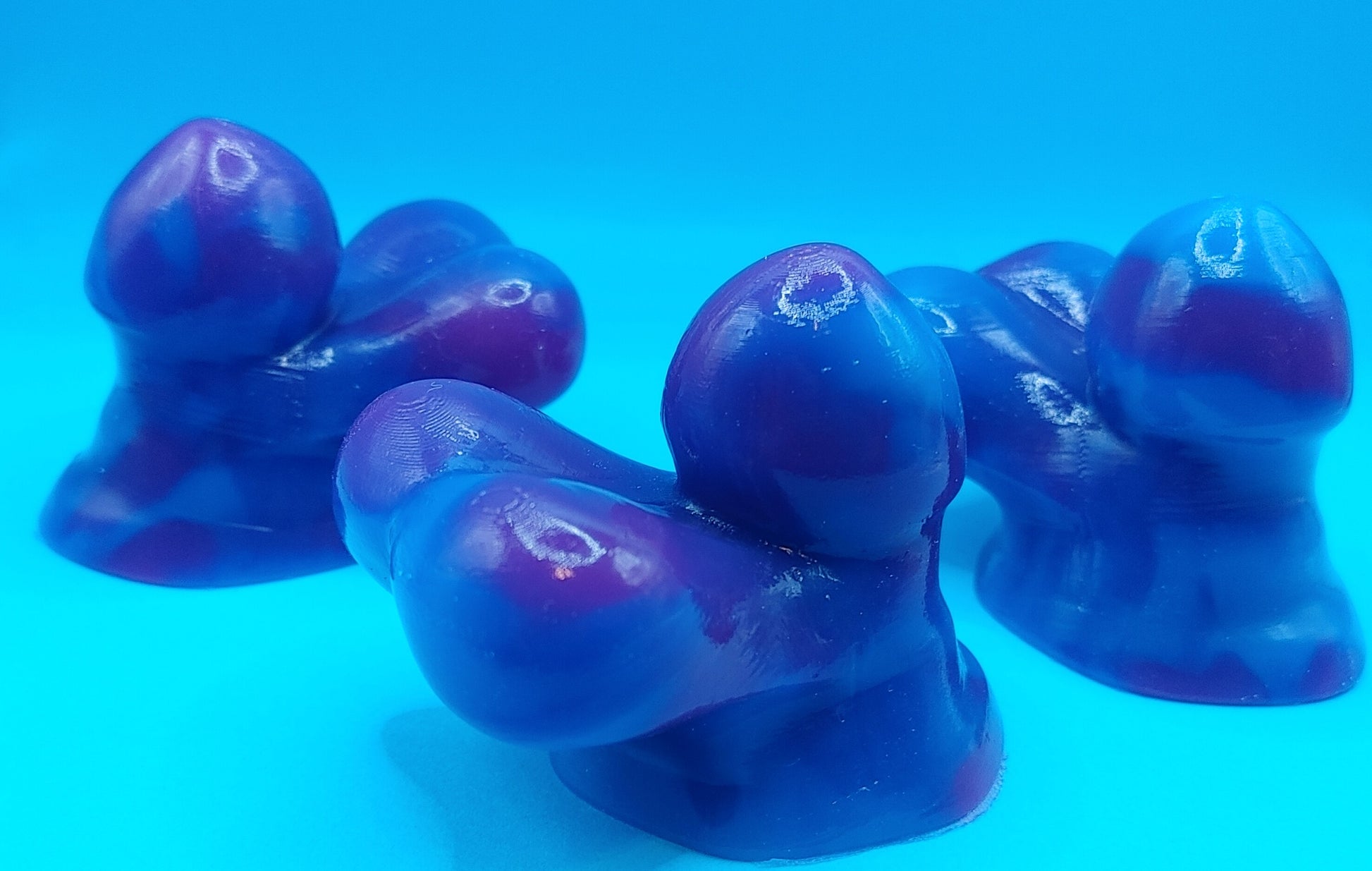 Our Pack Buddies are made via a unique FDM 3d printed molds that undergo a smoothing process to allow us to cast very smooth toys. While our toys are smooth to the touch and easy to clean, under bright lights you may be able to see the striations of typical 3d printed layers, rest assured these are 100% solid and these layers do not effect their use in any way, they are just a visual remnant from our casting process. Occasionally parts will have marks or small spots where the layer lines are visible or even barely noticeable to the touch but these do not affect the toys usability or durability. This method allows us to keep costs down and keep production local which in turns lets us offer a lower price for you. If these print artifacts are a deal breaker for you we understand and can suggest you check out the offerings of the many indie toymakers who specialize in more traditional means of toy casting.